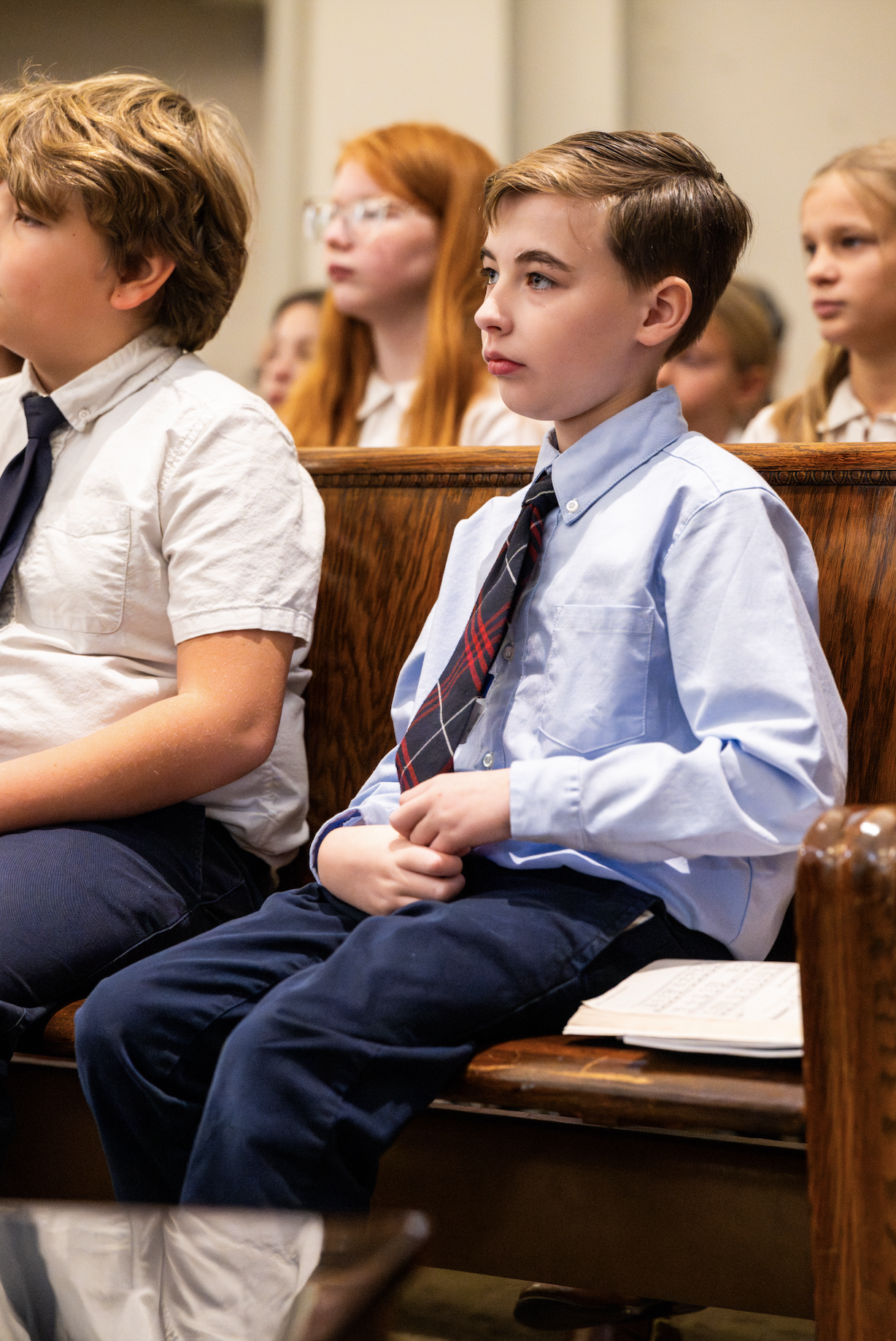 The boys think that the ties make them look handsome. When I asked them at morning prayer why we wear a tie to Mass, one third grader, Craig Price, said, "we want to thank God for all of our blessings, and wearing a tie to Mass shows God that we care about how we look in His house". As for wearing school uniform: